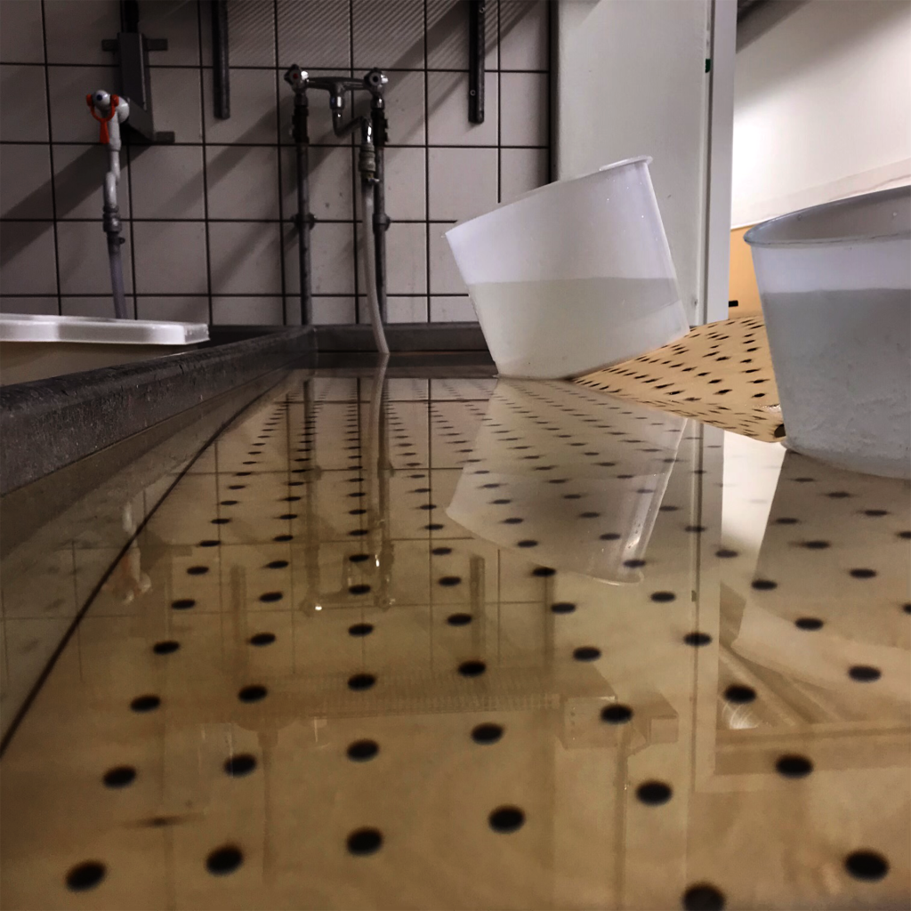 3 mm birch veneer. Steam bent and gathered with plastic strips